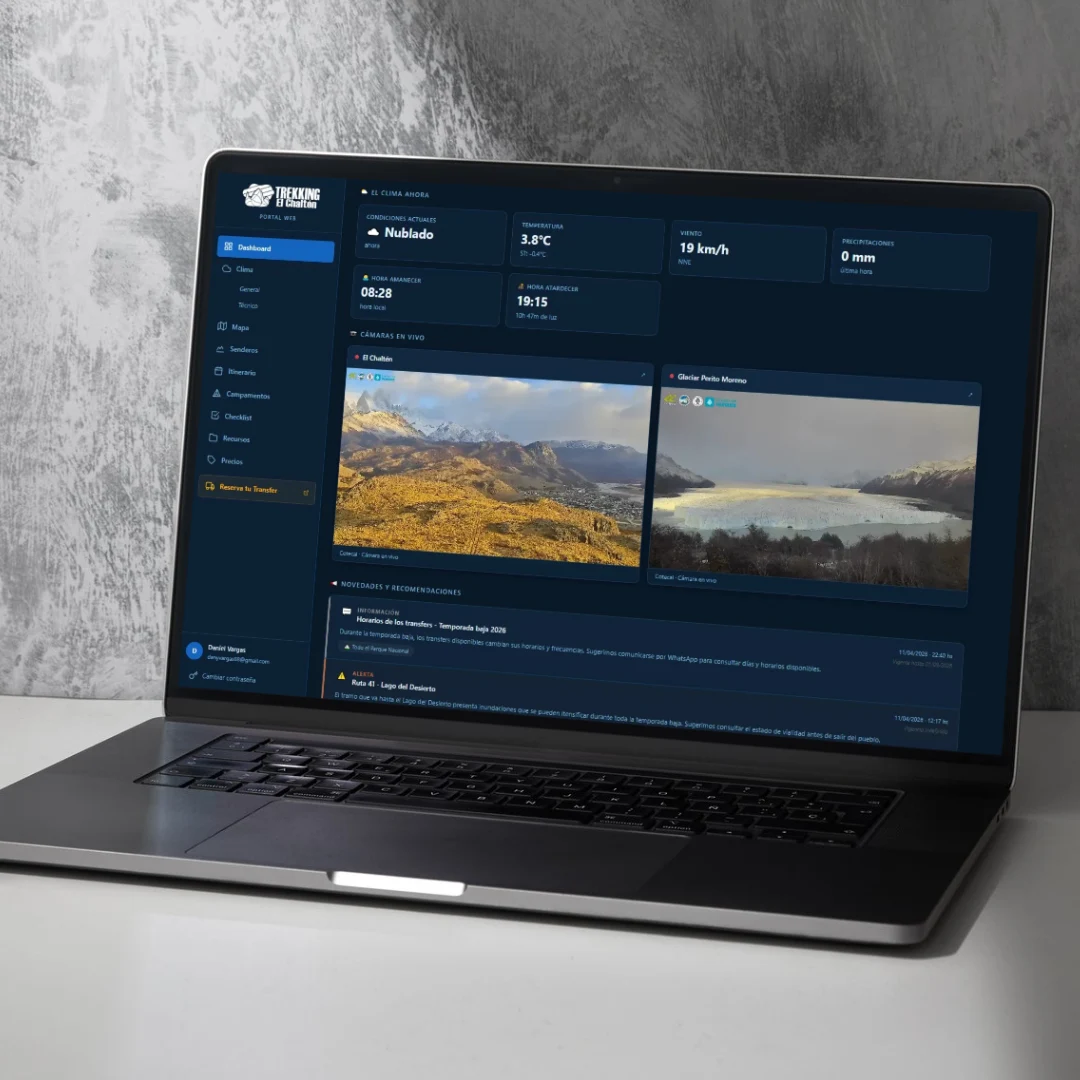 Clima en tiempo real, mapas de senderos con tracks GPS, itinerarios, campamentos, checklist de equipamiento y mucho más. Nuestro Portal Web Premium reúne toda la información del parque en una interfaz pensada para que planifiques tu viaje con claridad, sin tener que buscar en 10 sitios distintos. Entras con lo esencial, sales con todo resuelto.